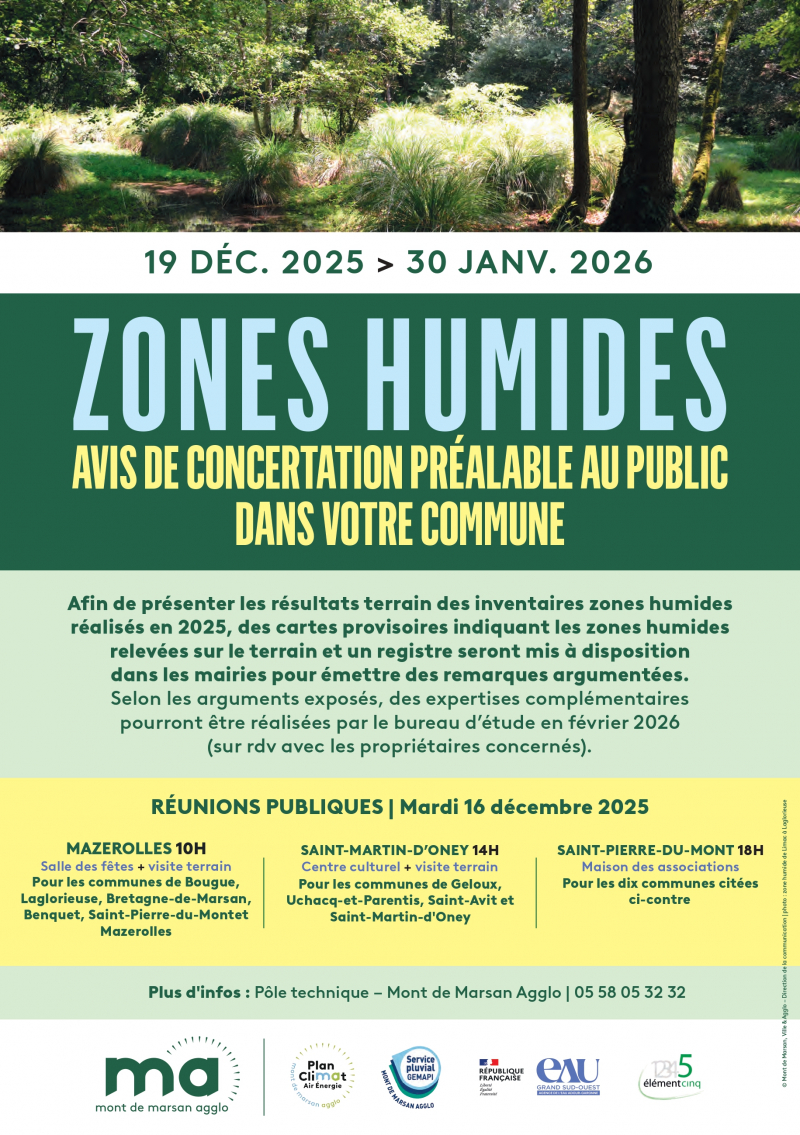 - de 10h à 12h à Mazerolles, pour les communes de Benquet, Bougue, Bretagne-de-Marsan, Laglorieuse, Saint-Pierre-du-Mont et Mazerolles ;