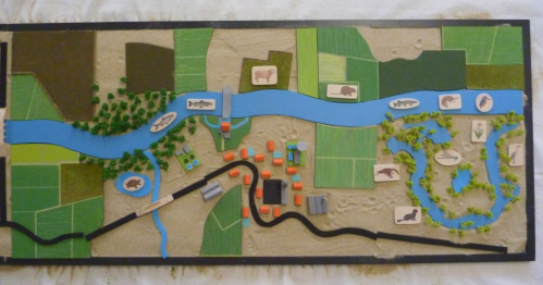 Au fil du temps le syndicat a acquis du matériel pédagogique lui permettant de s'adapter à un large public ainsi qu'à une multitude de thématiques : maquette du bassin versant, bâches thématiques illustrées, plateaux de jeux, tableau aimanté illustré, maquette du paysage modulable, puzzle sur les cycles de vie de certaines espèces, expo photo...